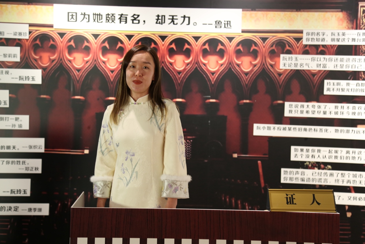 剧本杀开放黎莉莉、唐季珊、蔡楚生、孙瑜等角色作为玩家角色,参与者换上相应装束进行剧情演绎,成为法庭戏出庭作证的一员,为阮玲玉辩护或指控;观众们则成为法庭陪审员,近距离体验法庭氛围,了解阮玲玉人生悲剧。