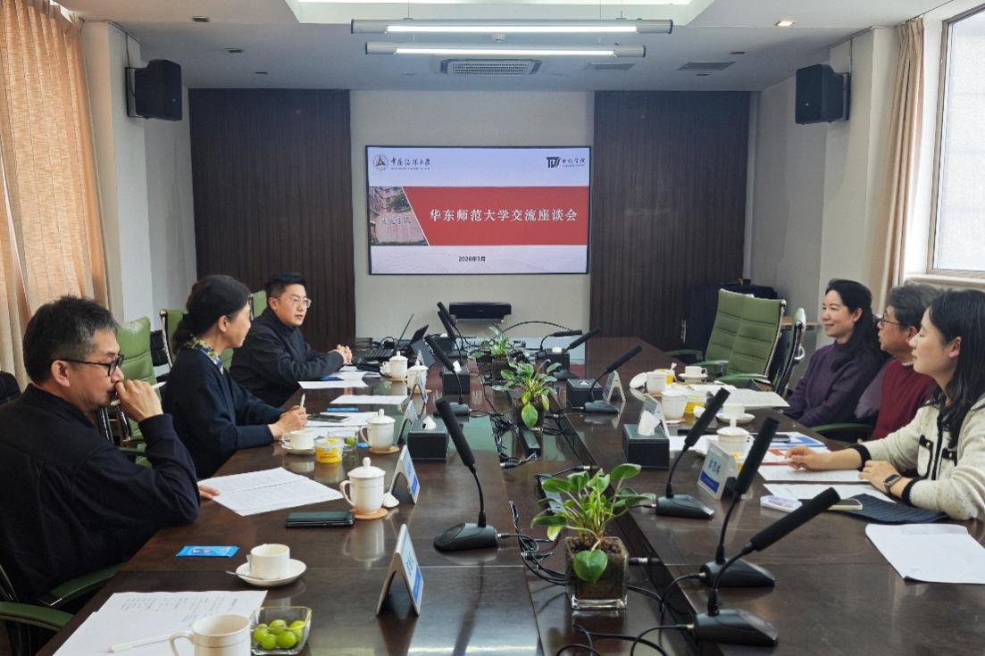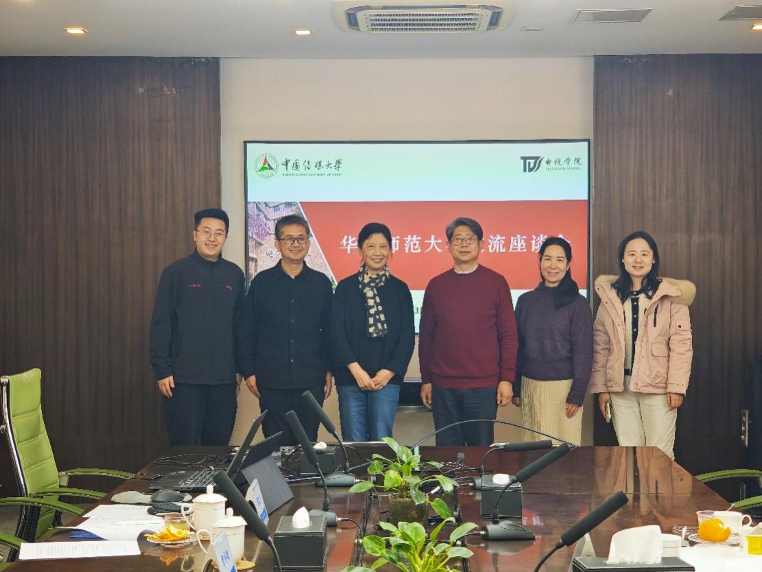 2026年3月13日,传播学院院长王峰教授、华东师范大学战略传播研究中心主任陈虹教授、外事秘书兼人事秘书吉思琪一行赴中国传媒大学电视学院、中国传媒大学出版社开展调研交流。双方围绕学科建设、平台合作等核心议题展开了深入探讨。